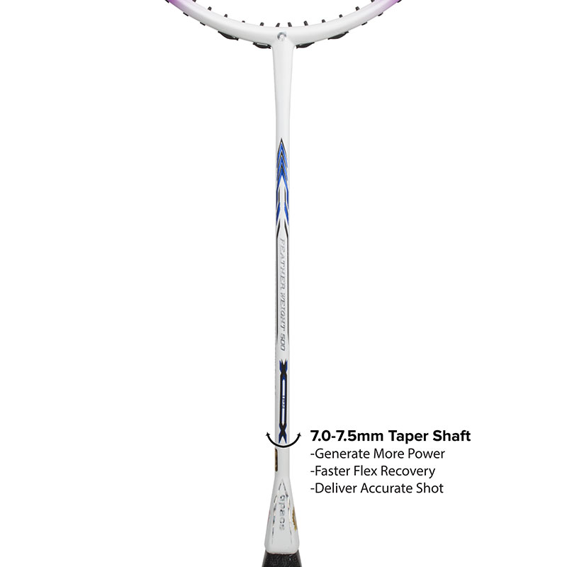 This Feightweight 500 racket’s handle is unique and different from other FeatherWeight rackets, i.e. Woven Graphite and light in weight.